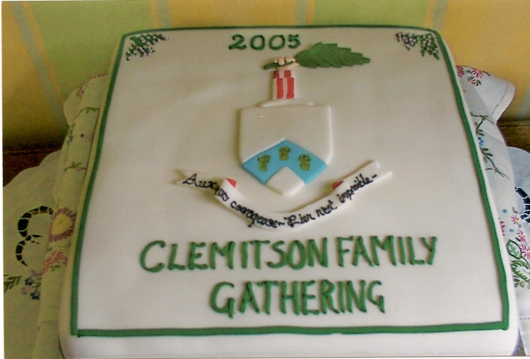 Jean Bullimore, sister of Ivor Clemitson, used the Clemitson coat of arms, as a cake decoration for her family reunion in 2005.