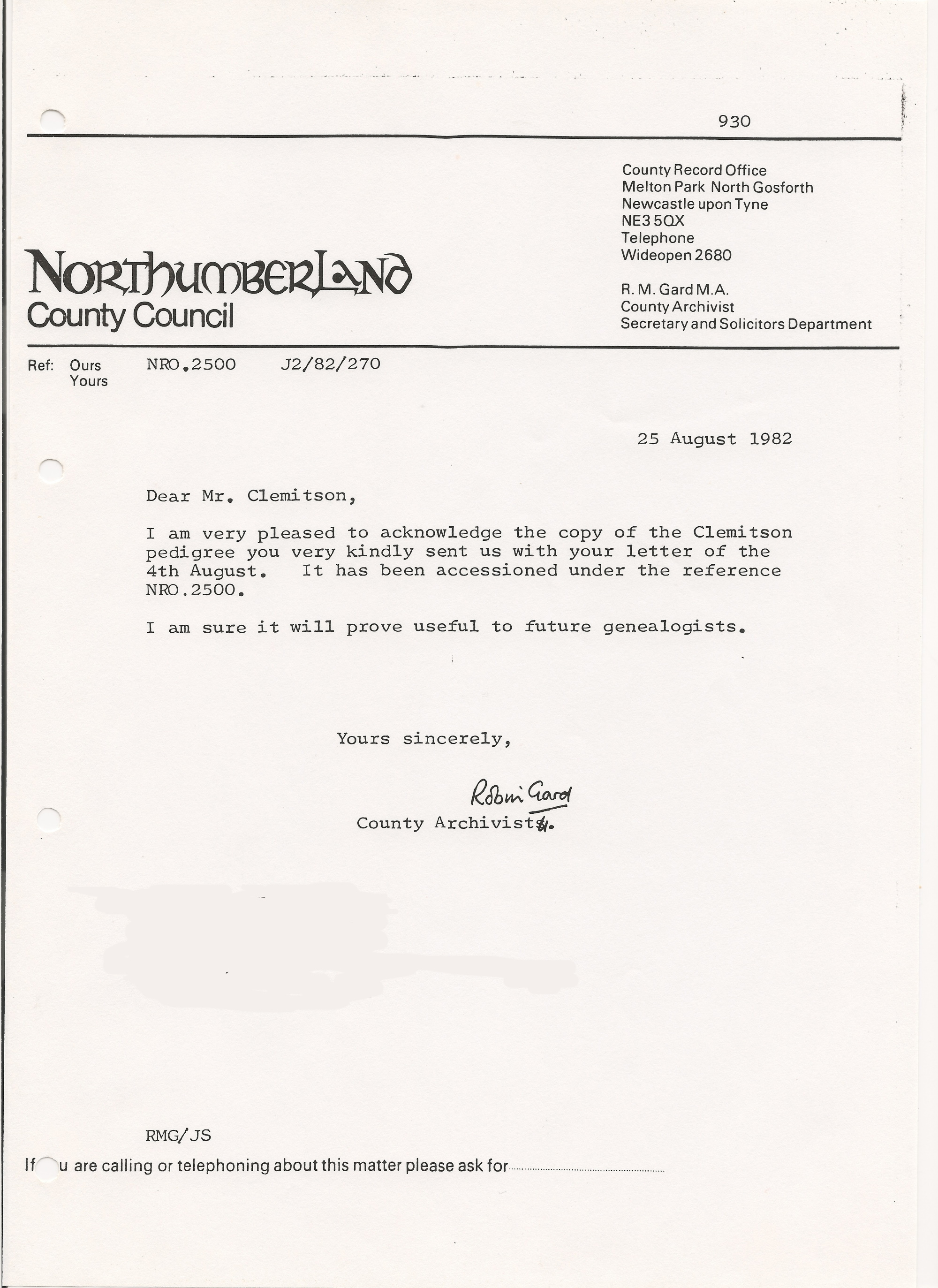 The Northumberland County Archives, where it has been accessioned under the reference NRO2500.