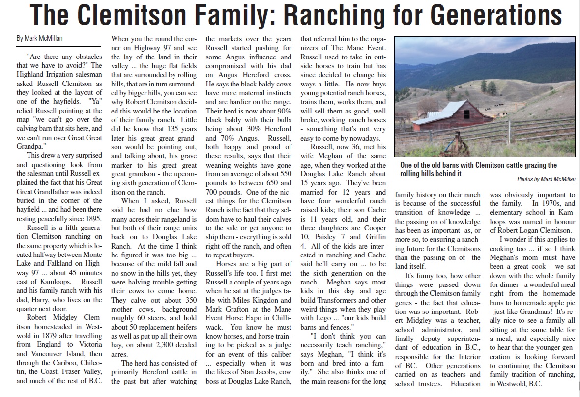 Further Reading - The Clemitson Family : Ranching for generations - Barriere Star Journal, May 14, 2015